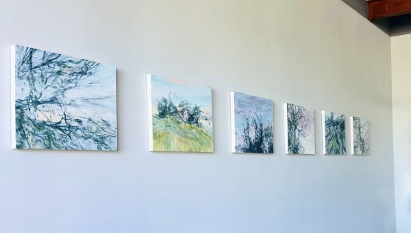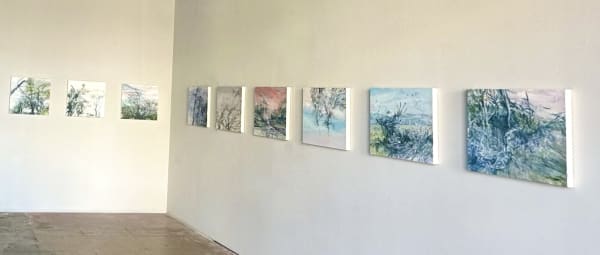 Art Produce Gallery is pleased to announce Asperitas, an exhibition of 15 paintings by Melanie Taylor, accompanied with 15 haiku poems by artist Lucas Michael, on view January 8th - March 2nd 2024. The exhibition presents a series of paintings that each bear the title of a haiku poem. Melanie Taylor’s paintings are interpretations of the natural environment and a consideration of memory, the passage of time, and the margin between reality and imagination. In the paintings marks and gestural notations reveal forms observed in the landscape, allowing for process and the role of chance to exist within a visceral sense of place. This coexistence of the unpredictable and deliberate relates to the factual and uncontrollable in nature and its vulnerability to climate change. The collection of fifteen haikus was composed by Lucas Michael in February 2022, begun in NYC and completed during a stay in Uruguay while surrounded by nature. They are created through a process using word games and a form of automatic writing that combines chance with composition.